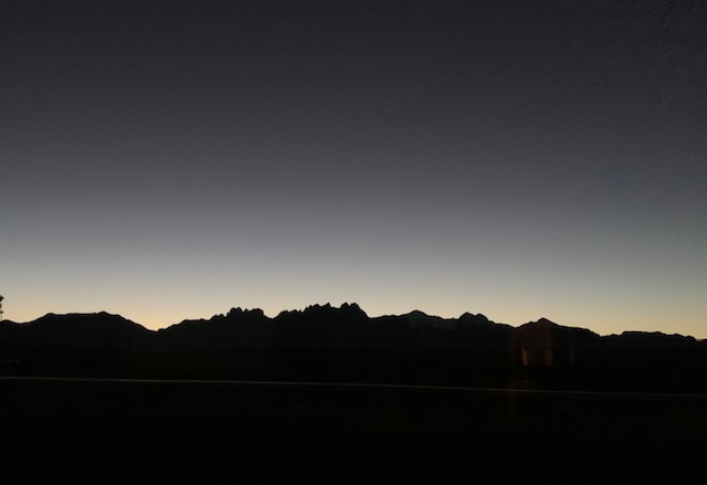 Humidity builds to the point where it finally releases in a crazy barrage of hail and rain – the temperature drops about fifteen degrees. While driving, visibility became almost zero, intense enough to require pulling off the road in order to wait it out. A brief reprieve – as soon as it ceased, the temperature rose again.