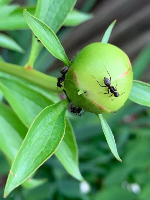 This week the mosquitos appear to have thinned out a bit. One can hope that trend continues. Last year we had an abundance of bumble bees in the yard but very few honeybees, which was worrisome. So it was a happy discovery and good sign to find that the Rose of Sharon was filled with honeybees, entering deep into their flowers with their little bee-butts sticking out, then emerging dusted with pollen.