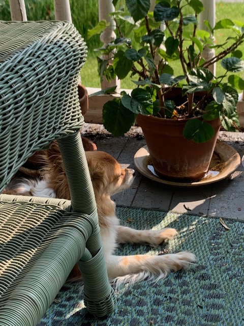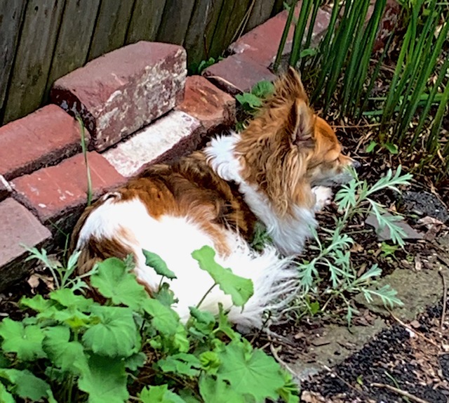 While this flamboyantly beautiful season was unfolding, my little dog Rudi was sick, which was cause for much anxiety. He is a loyal and loving companion, but also functions as an extra set of ears for me, an unofficial hearing/alert dog. Even aside from riding out the isolating days of the early pandemic together, I probably spend more time alone with him beyond that – more than with anybody else. I depend on him daily, not just for comfort, but actually in order to navigate parts of my daily world. He is my constant. He is a quirky little rescue, appears to be a papillon/chihuahua cross, I am guessing probably around nine years old by now.