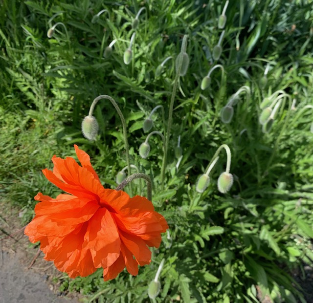 Blooming around the house and on the street this week we have pops of orange color. Sneezeweed is growing against the foundation.