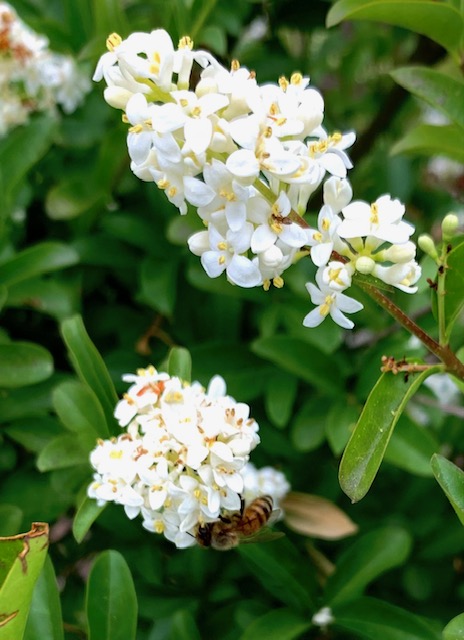 In the early morning hours before it gets too steamy, there has been a lovely floral scent on the warm breezes, not unlike wild summer roses. This propels me out into the street in search of the source – only to find it is emanating from a combination of flowering plants on my own front porch, the blend a harmonious perfume.